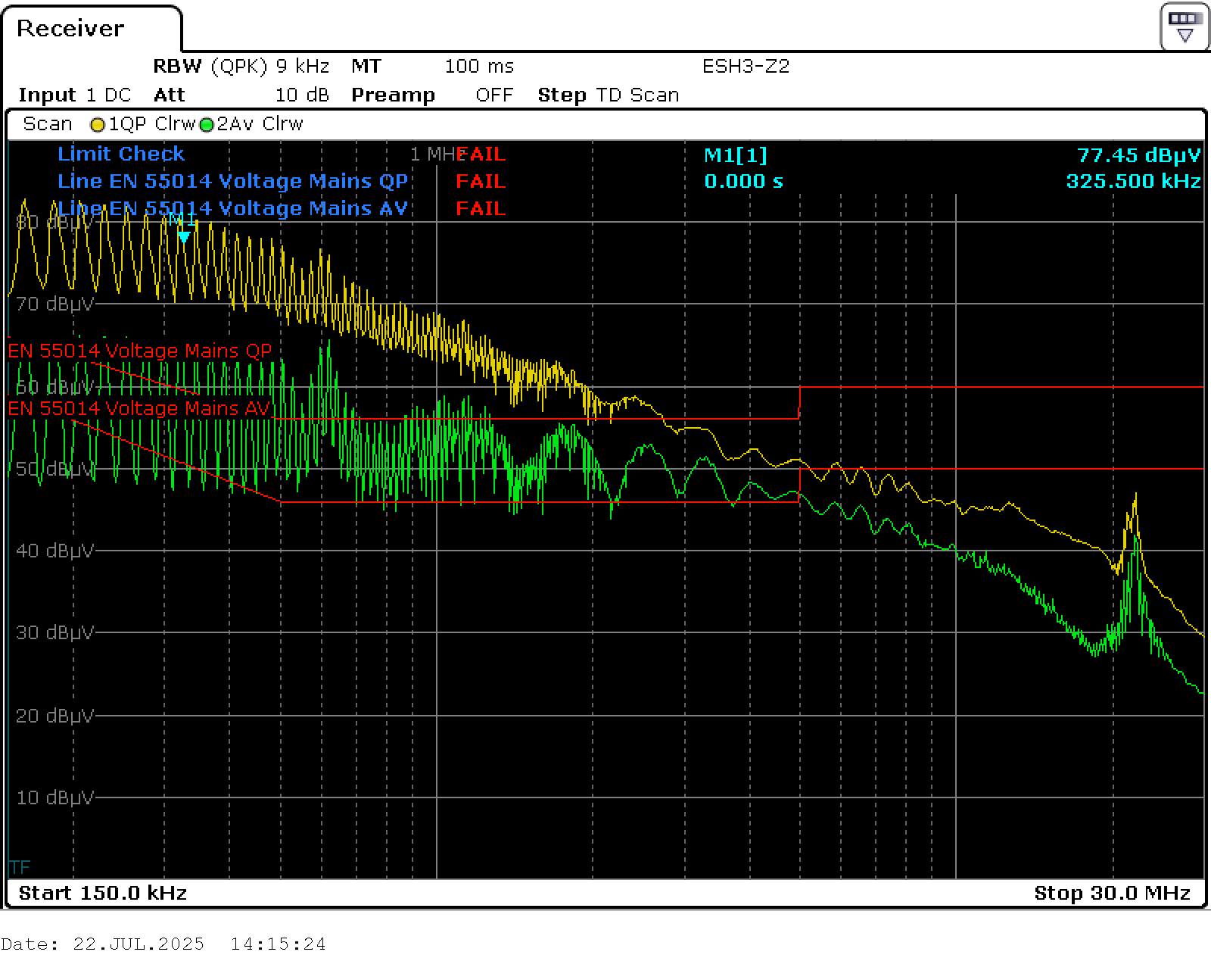 Auch die Messung der leitungsgebundenen Störungen lag oberhalb des Limits: