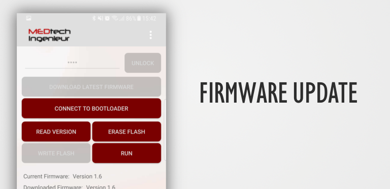 Another new feature is the ability to perform software updates via Bluetooth. The app can download the latest firmware from the internet. Currently, the update mode is designed for experts. Connection to the bootloader is established via a separate button. The operator can then read the trainer's current firmware version, delete the application's flash memory, install the new firmware, and exit bootloader mode. In the future, the page can be customized to allow any user to perform software updates.