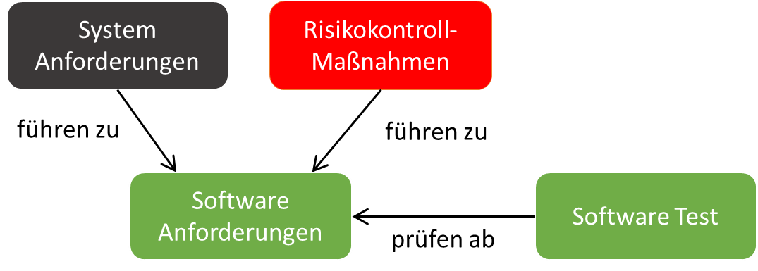 | Kapitel 5.1.1 | c. Rückverfolgbarkeit zwischen System-Anforderungen, Software-Anforderungen, Software-System-Prüfungen und Risikokontroll-Maßnahmen, die in Software implementiert werden; |